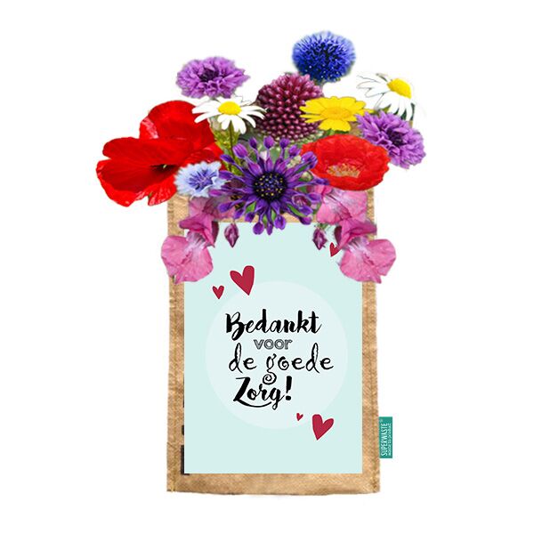 Dit hangtuintje bevat een aardetablet en een zakje bijenbloemen zaden. Op de achterkant van het label staan de plantinstructies vermeld. De zakjes laten zich gemakkelijk ophangen aan een spijker en zijn geschikt als brievenbus geschenk.