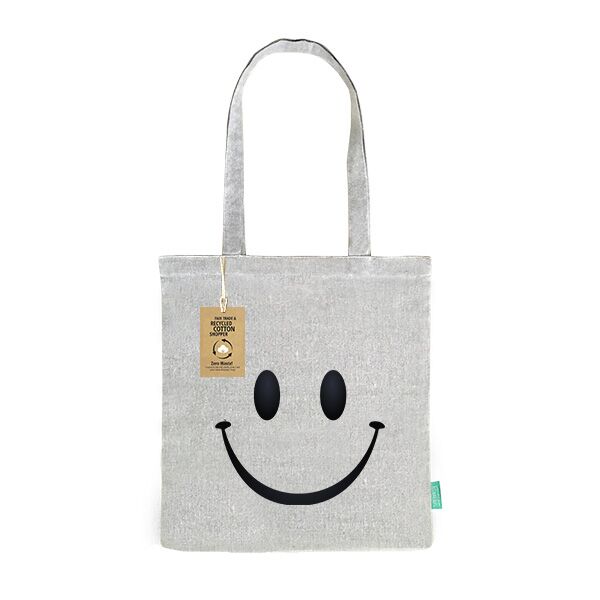 Deze shopper heeft al heel wat meegemaakt! Dit handige lichtgewicht tasje is namelijk gemaakt van gerecycled katoen. De lange hengsels maken het mogelijk om de tas zowel in de hand als over de schouder te dragen. Ideaal voor dagelijks gebruik. Inclusief opdruk met Smiley. Daar wordt je toch blij van!