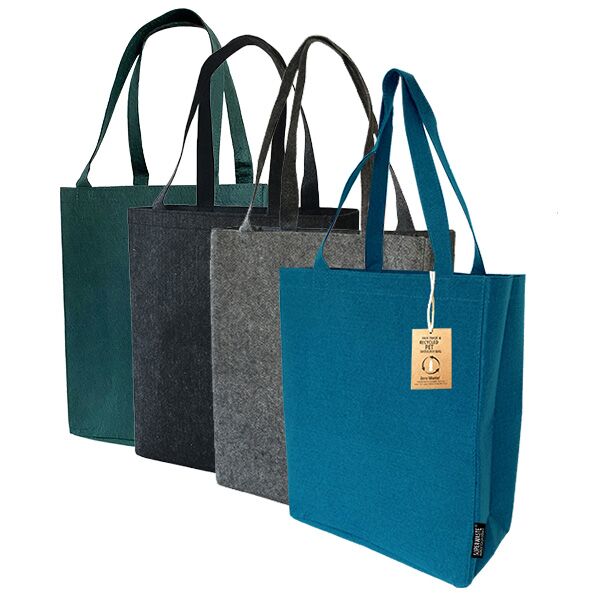 I used to be a plastic bottle, now I am your new shoulder bag! Deze stijlvolle en handzame tas is gemaakt van circa 9 gerecyclede PET flessen. Een ware eyecatcher die gebruikt kan worden als handtas of boodschappentas. De tas heeft de uitstraling en zachtheid van vilt. Door de lange hengsels draag je de tas comfortabel over je schouder.