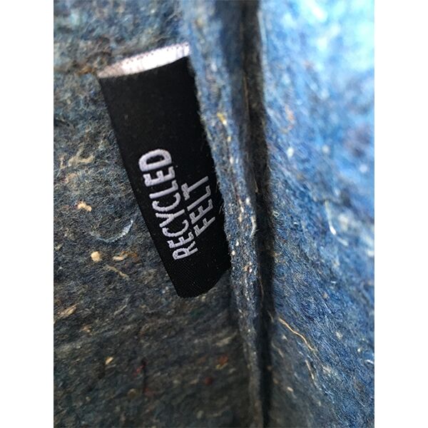 Oude jeans worden opnieuw vervezeld en samengeperst tot deze nieuwe, stoere vilten stof. Een stof met karakter!