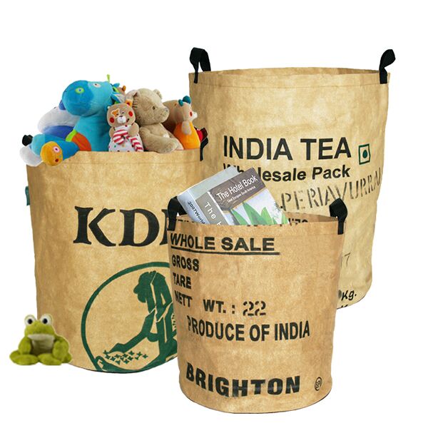 Gebruik deze multifunctionele ronde Basket bijvoorbeeld als opbergmand, plantenpot, wasmand of prullenmand. Multifunctioneel is hij zeker! Makkelijk opvouwbaar als je hem tijdelijk niet gebruikt. De manden zijn gemaakt van gerecyclede theezakken uit de theepluk in India.